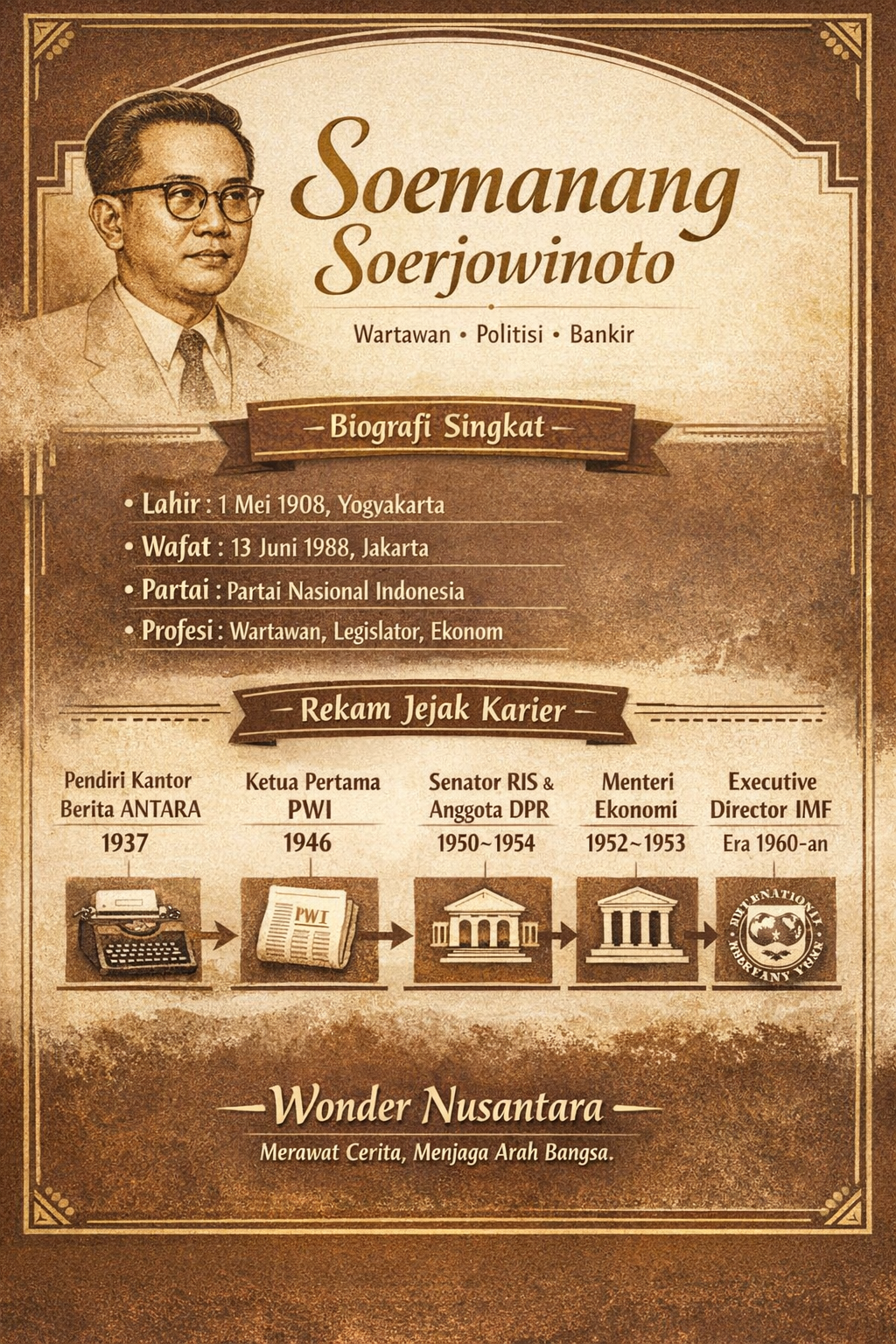 Setiap 9 Februari, bangsa Indonesia memperingati Hari Pers Nasional. Momentum ini bukan sekadar perayaan profesi, tetapi ruang refleksi: sejauh mana pers ikut membangun arah bangsa. Dalam sejarah Indonesia, pers tidak hanya melaporkan peristiwa, tetapi juga hadir di jantung pembentukan negara. Salah satu tokoh yang merepresentasikan peran itu adalah Soemanang Soerjowinoto.
